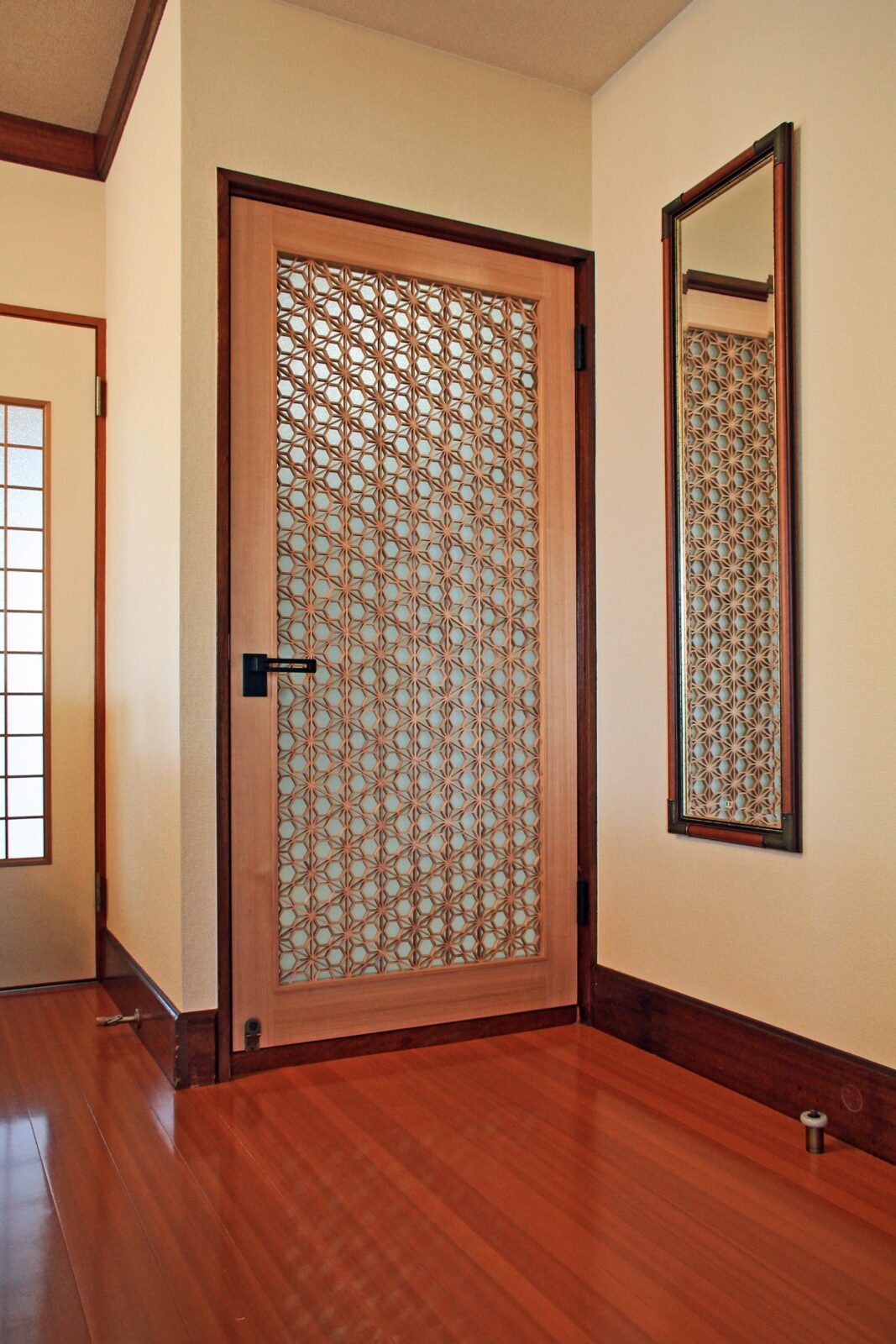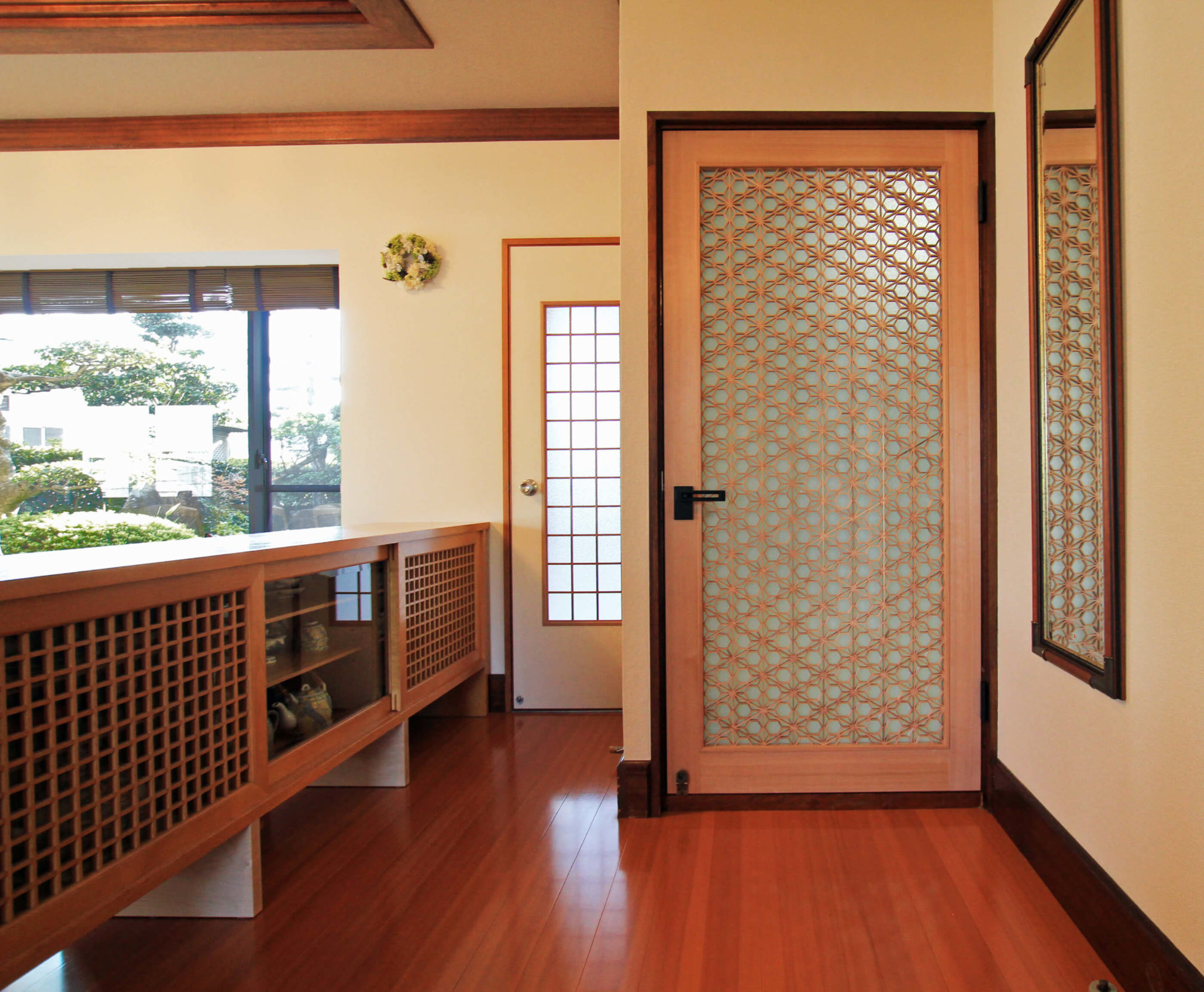 A concrete built house, over 30 years old. Genuine materials showed beautiful aging in the Japanese room, like the traditional “Saobuchi” ceilings made with precious red cedar. We redid the door to that room.