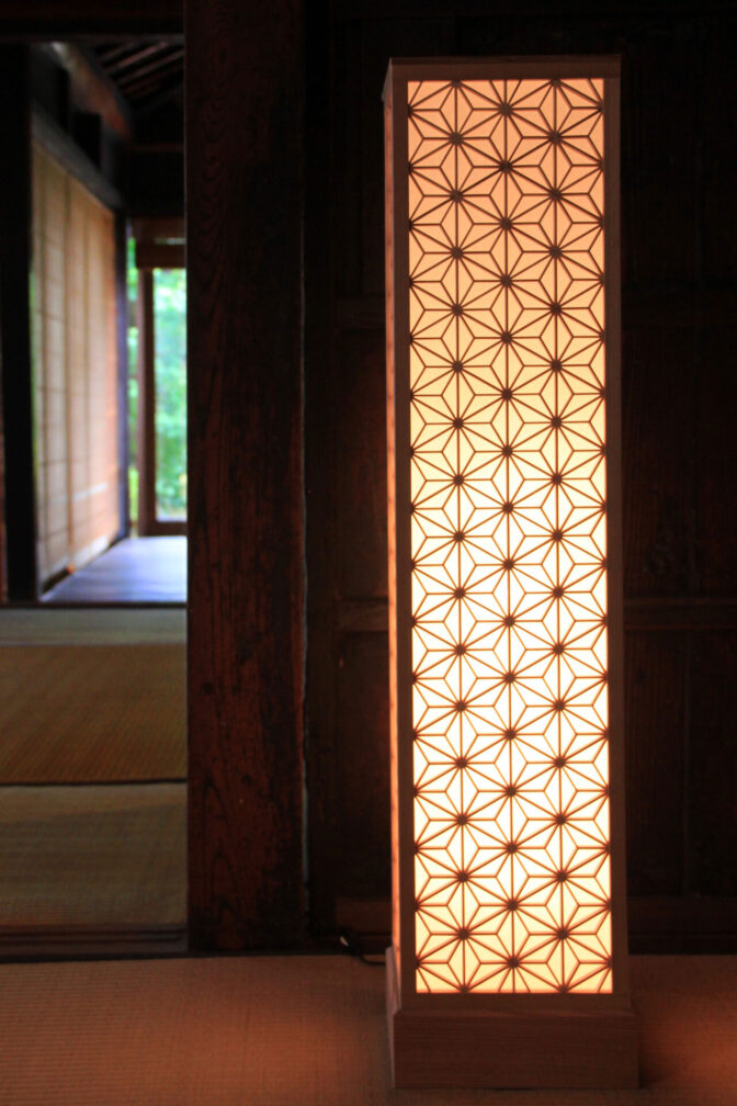 幾何学模様の「麻の葉」は魔除けの効果があると伝えられ、平安時代から仏像の装飾としても描かれています。また、麻は丈夫ですくすくとまっすぐ伸びることから、日本では子供の成長を願って産着に用いる風習がありました。 和柄の中でも人気が高く、現代では織物や漆芸の意匠としてもひろく愛好されています。