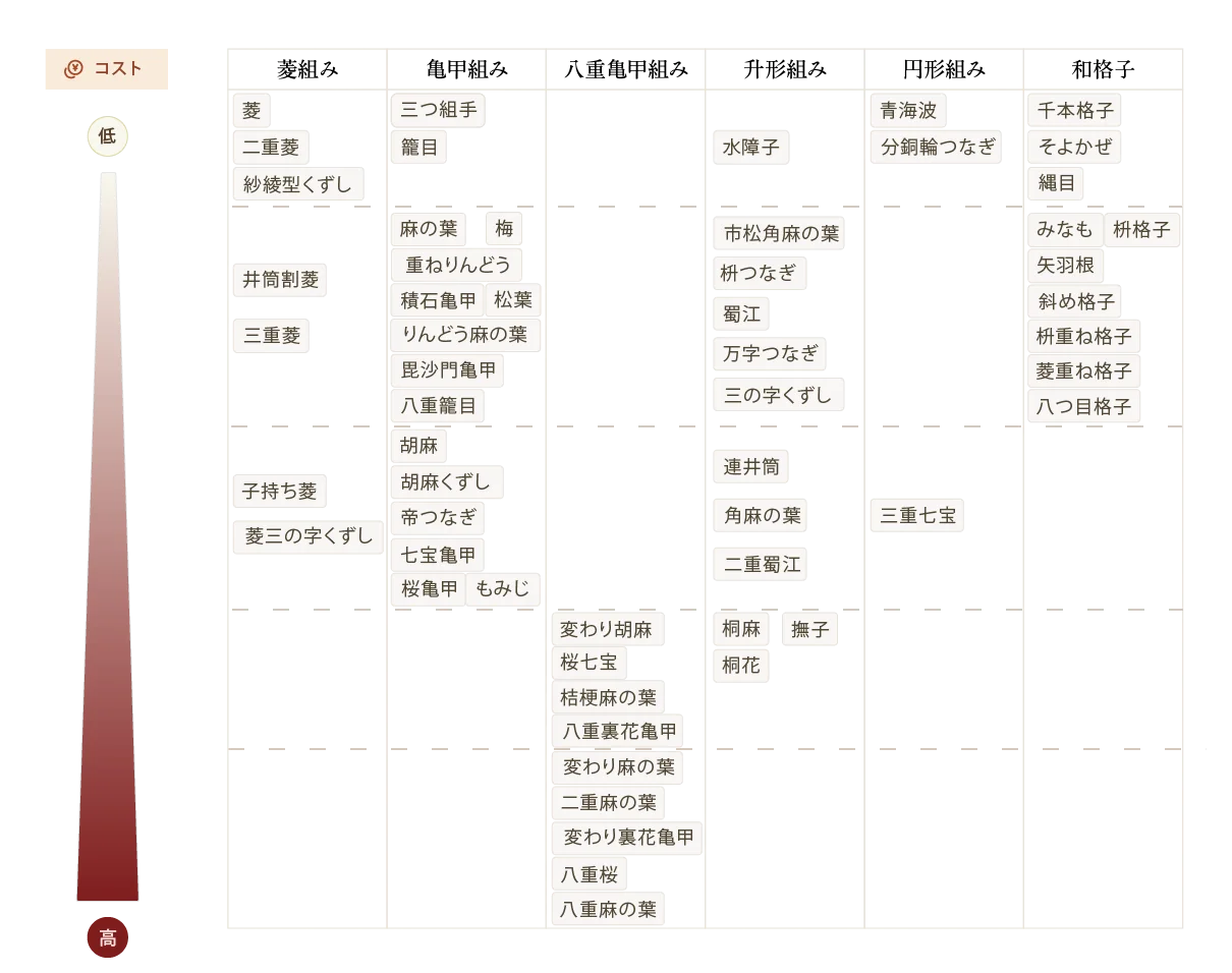 組子のピッチひとつで印象やコストは大きく変わります。ご希望の寸法をスタイルに合わせて最適に割り付け、紋様が切れないよう細部まで美しく丁寧に仕上げます。