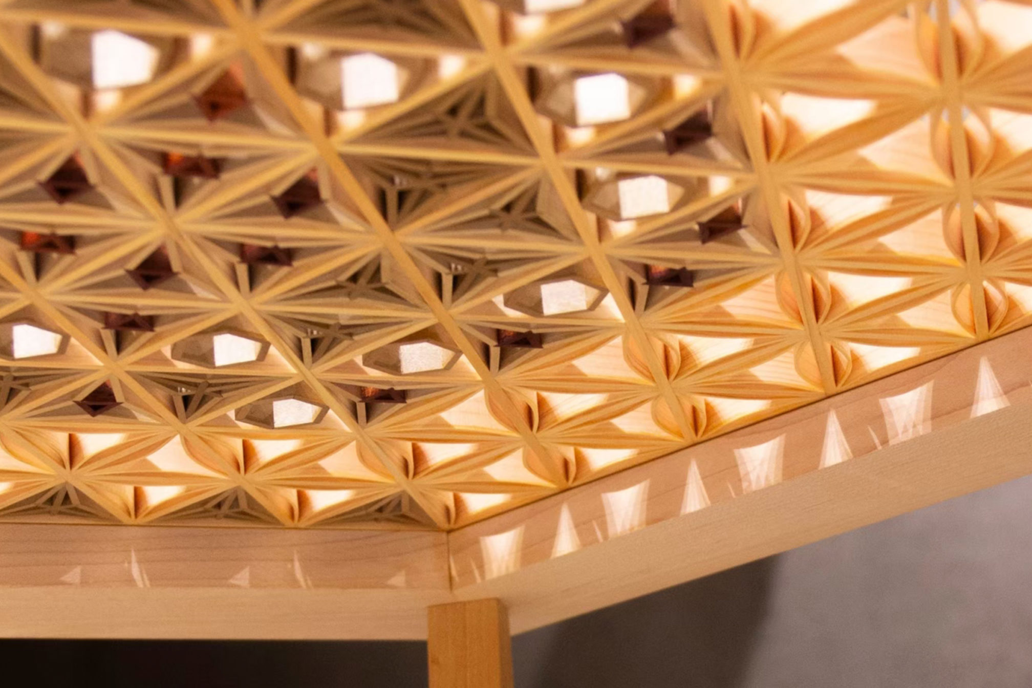 | 材料 | フレーム:メープル / 組子:国産檜 朴⽊ ウォルナット パドック |