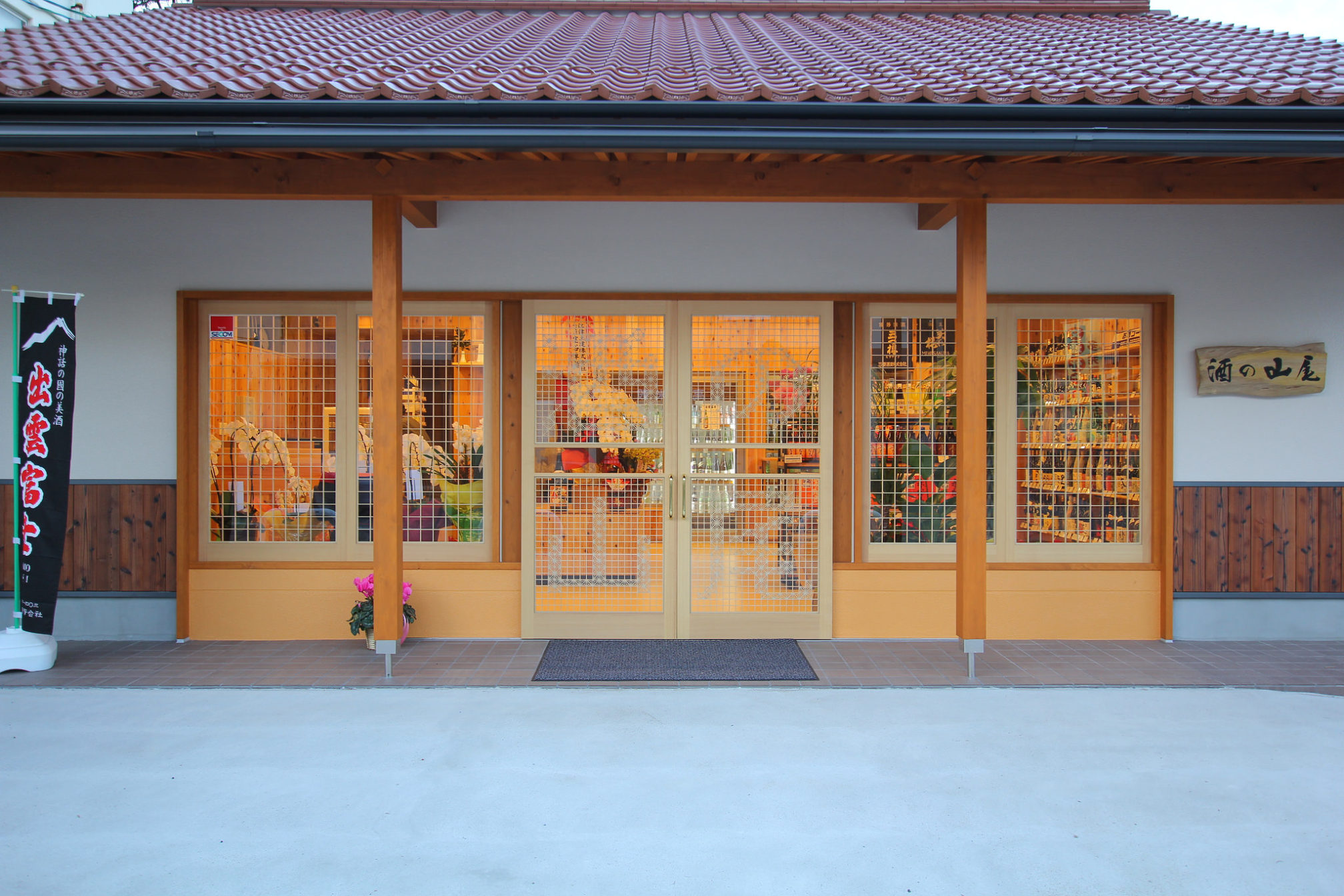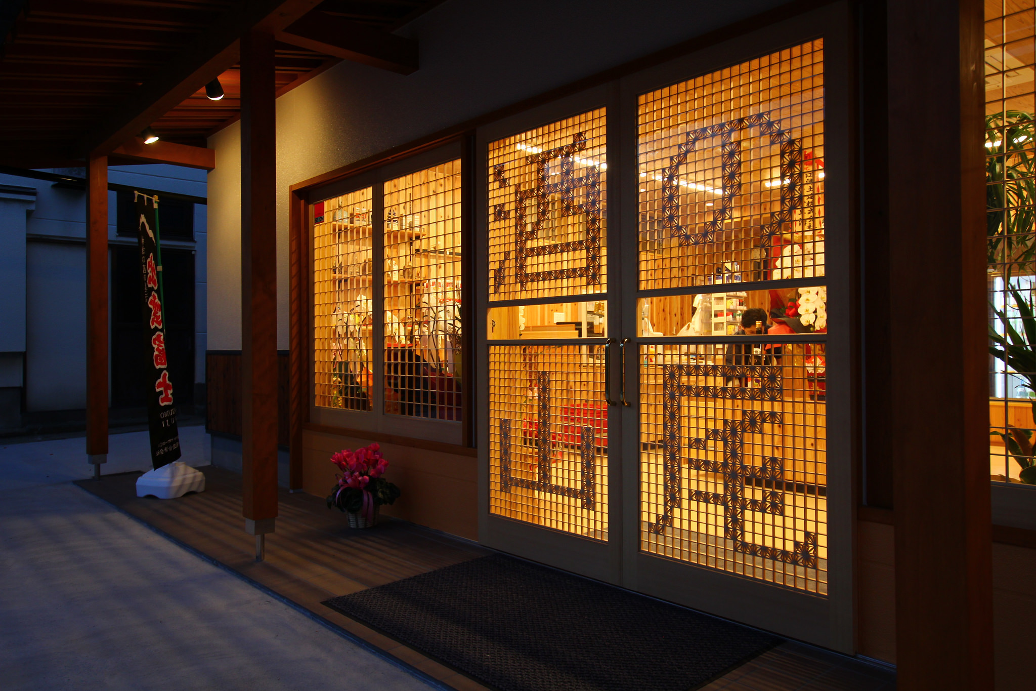 江津の国道沿いにあるお店で夜になると店内照明に照らされてとてもよく見えます。お施主様にもとても喜んでいただきましたが、後々まで地元の人たちから「見たよ!」とお声掛けいただきました。