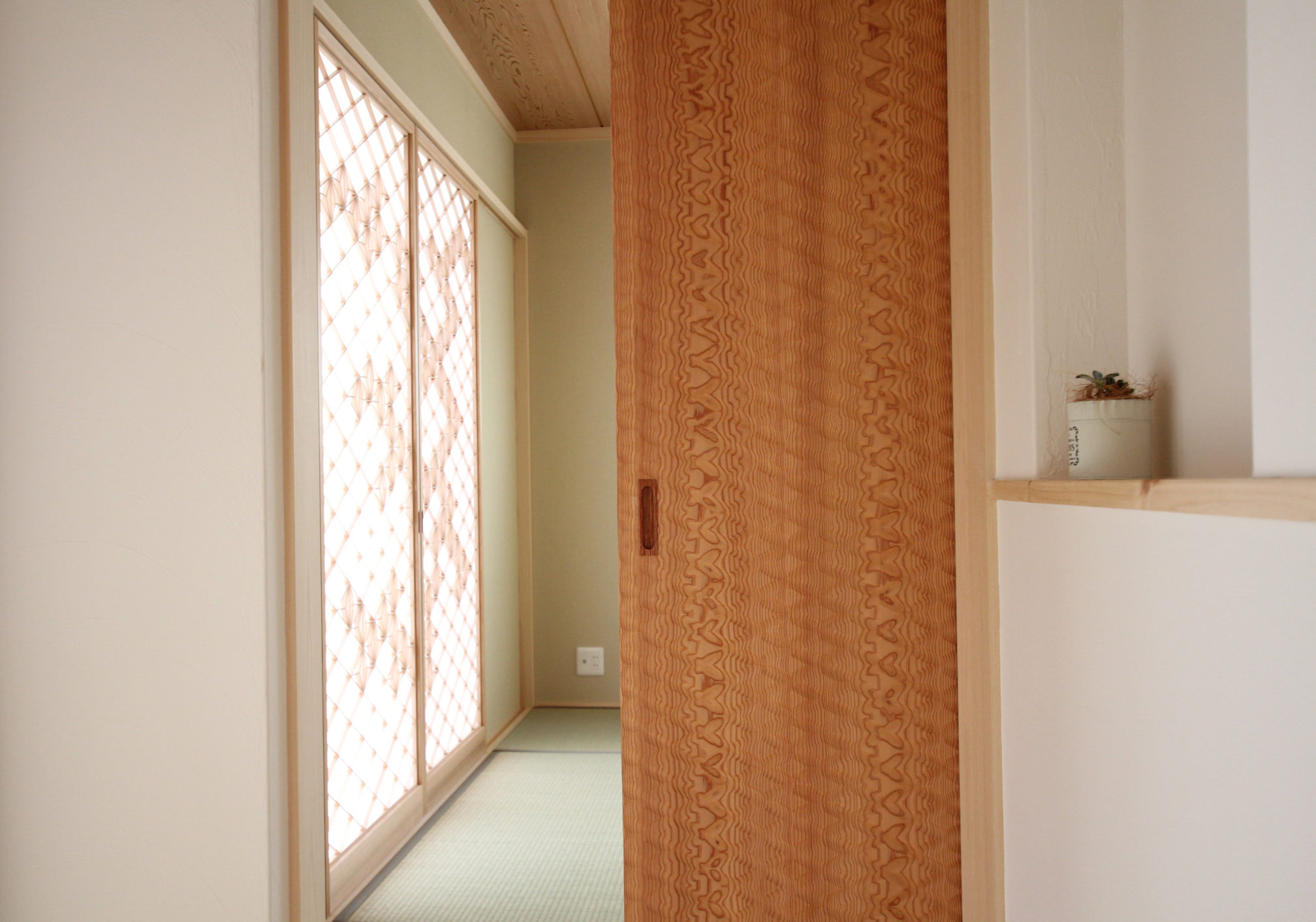 | 制作物 | リビング障子、間仕切り、板戸、なぐり加工 |