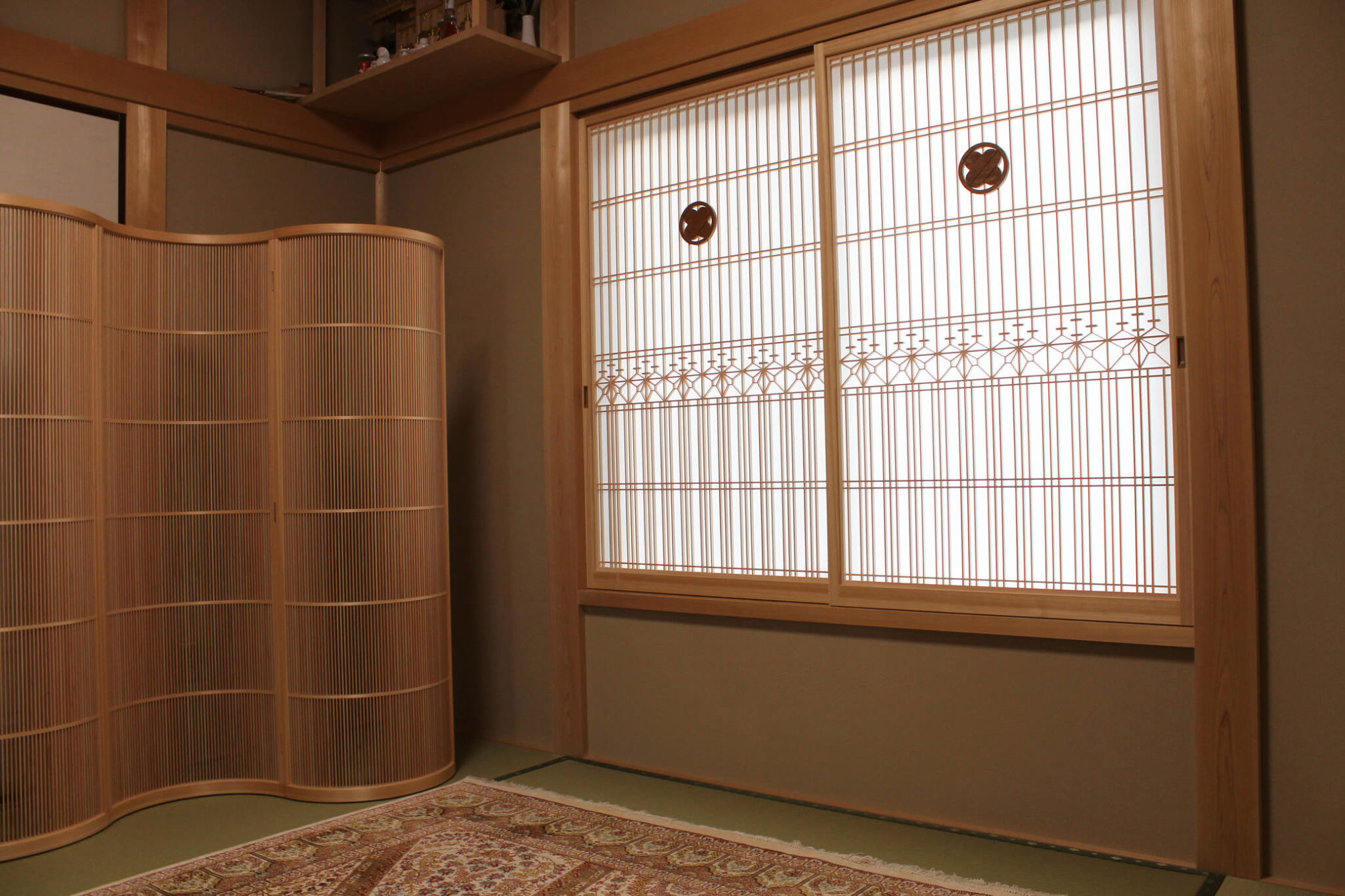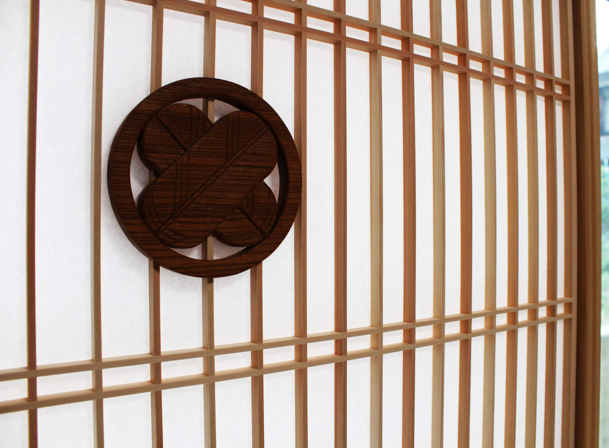 中連障子 桐麻・家紋入り障子 曲げ組子パーティション 波