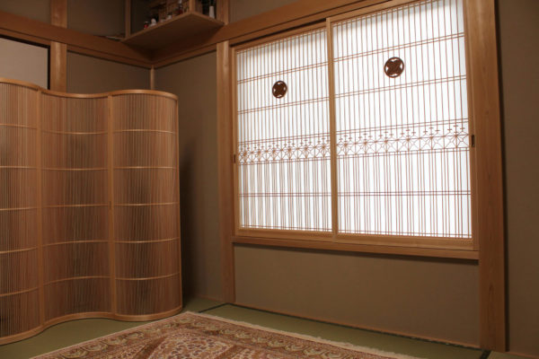 和室には彫刻家紋の入った中連障子、そしてパーティション波もお買い上げいただきました。僕らのものづくりに強く共感してくださったお施主様に只々感謝、感謝です。