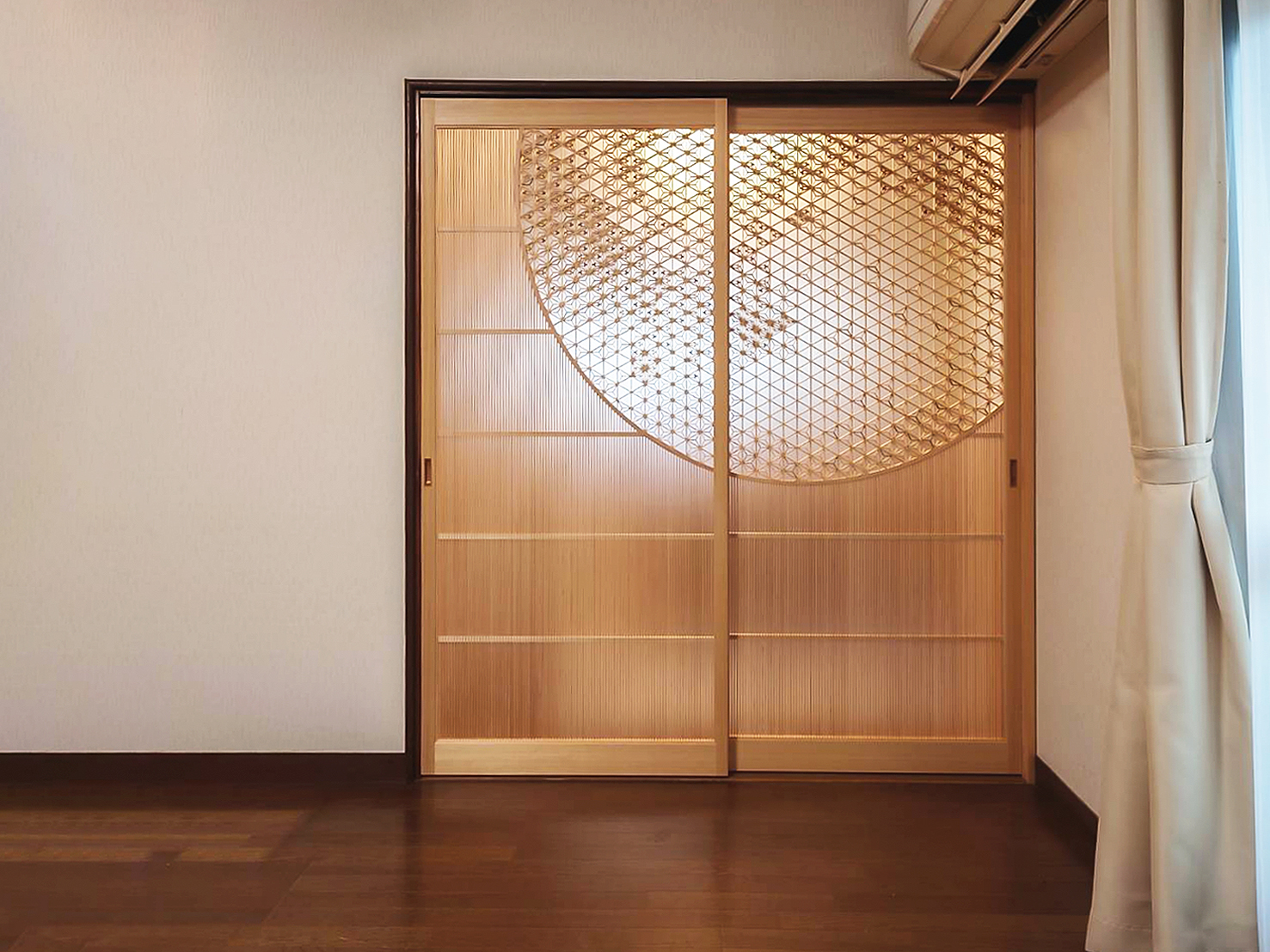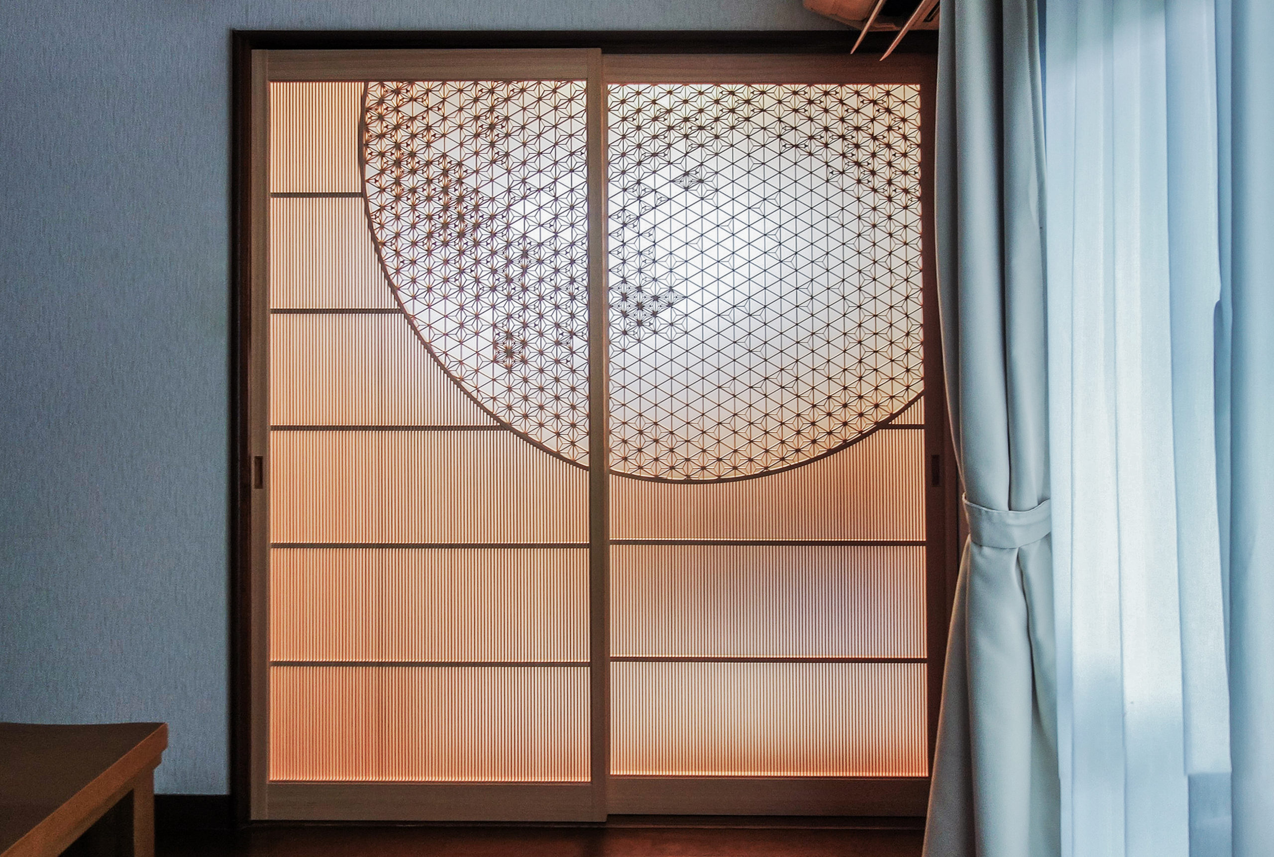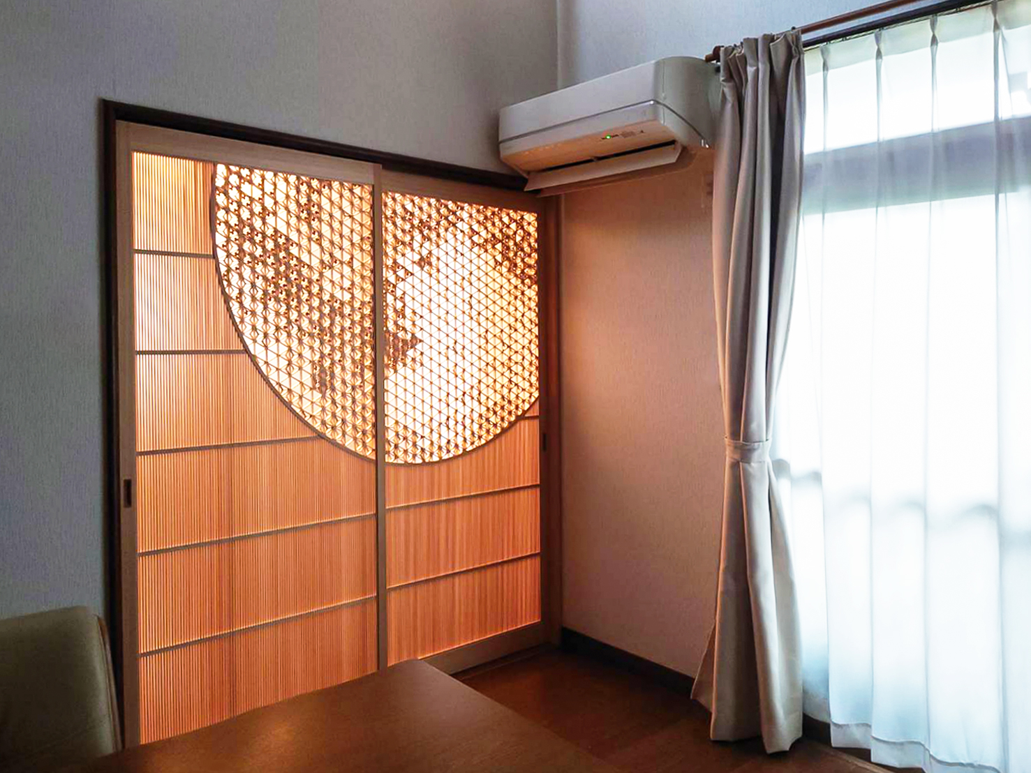 string(80) "愛媛県 O様 個人邸宅 「月」の表情を組子で描くアート建具"