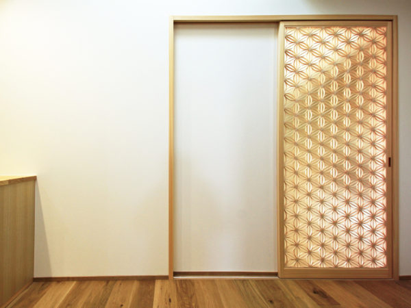 装飾を抑え、シンプルな工夫を凝らしたミニマルな和洋折衷の組子。